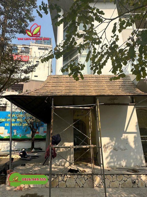 Tấm lợp pơ mu nhựa được sử dụng phổ biến cho mái nhà gỗ, nhà nghỉ sinh thái, homestay, resort, giúp tạo cảm giác ấm cúng và gần gũi thiên nhiên.